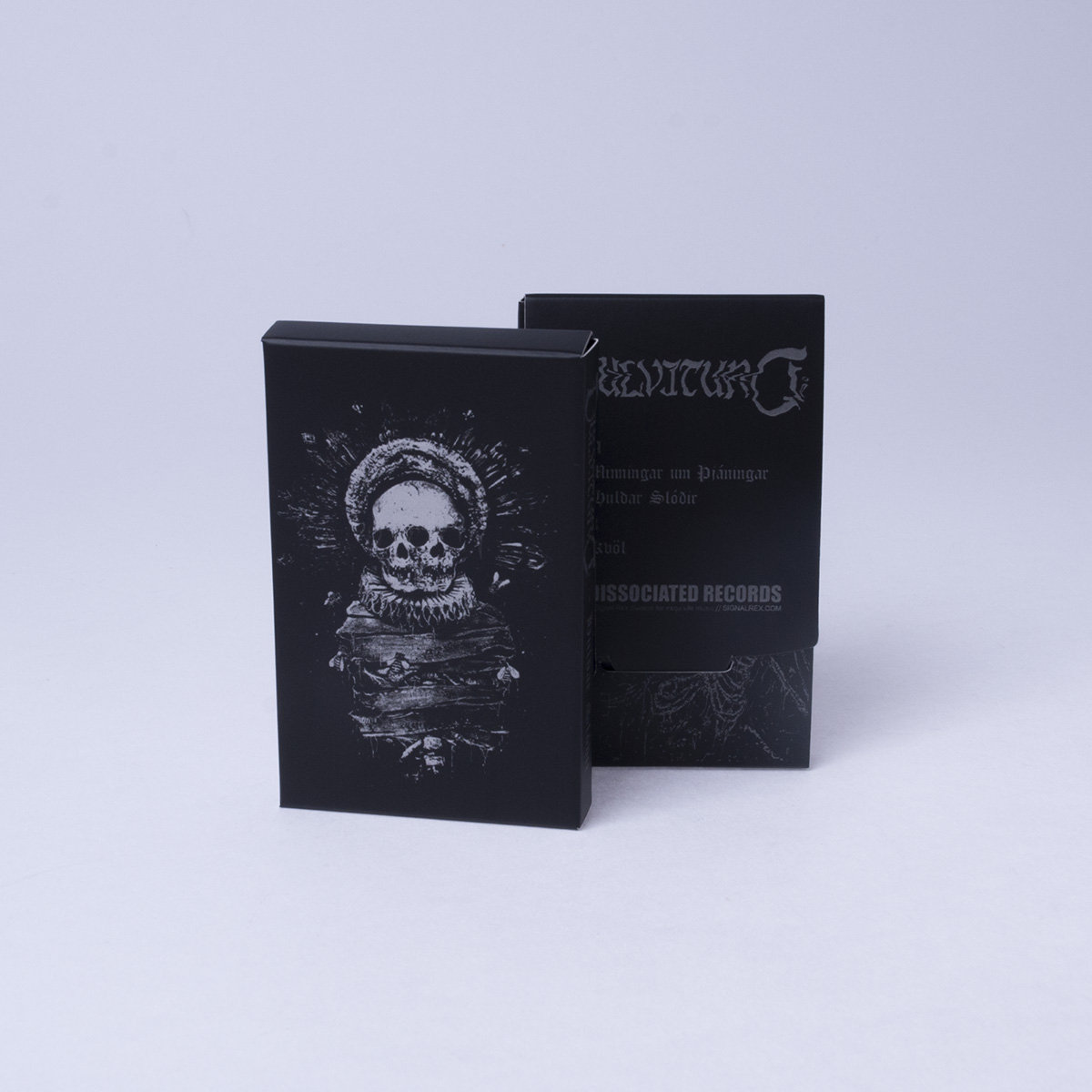 After the highly reckoned 2015 debut álbum, Lífsins þungu spor, which saw the project play live at such events as the latest Eistnaflug last July and at the upcoming Norðanpaunk on July 29th, Dulvitund is back under the banner of DISSOCIATED RECORDS to release the Huldar Slóðir EP: a limited cassette with on-body tampography print, with folded slipcase, matte lamination, and shrinkwrapping.